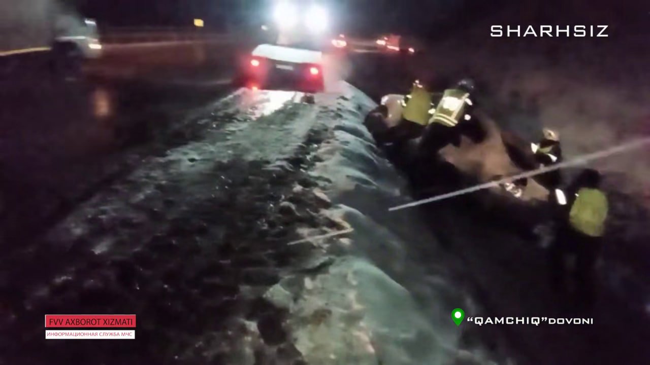 Qamchiq dovonida kuzatilgan noqulay ob-havo sabab yo‘lda qiyinchilikka duch kelgan haydovchi va yo‘lovchilarga FVV qutqaruvchilari amaliy yordam ko‘rsatdi. Muzlama hosil bo‘lishining oldini olish uchun qum-tuz aralashmasi sepildi.