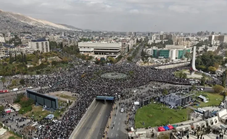 Tantanalar 8 dekabr kuni ertalab poytaxt Damashqda UmmaVi maydonida o’n minglab suriyaliklar ishtirok etdilar.