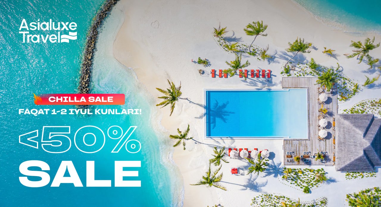 Yoz ayni avjida va “Asialuxe Travel” kompaniyasi “Chilla Sale” aksiyasini e’lon qildi! Faqat hozir orzudagi ta’tilni 50% gacha chegirma bilan band qilish mumkin.