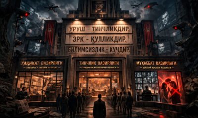 O‘sha binoning peshtoqiga uchta shior bitib qo‘yilgandi: Urush – tinchlikdir. Erk – qullikdir. Bilimsizlik – kuchdir. Va bu shiorni hayotga tatbiq qilish uchun noyob vazirliklar o‘ylab...