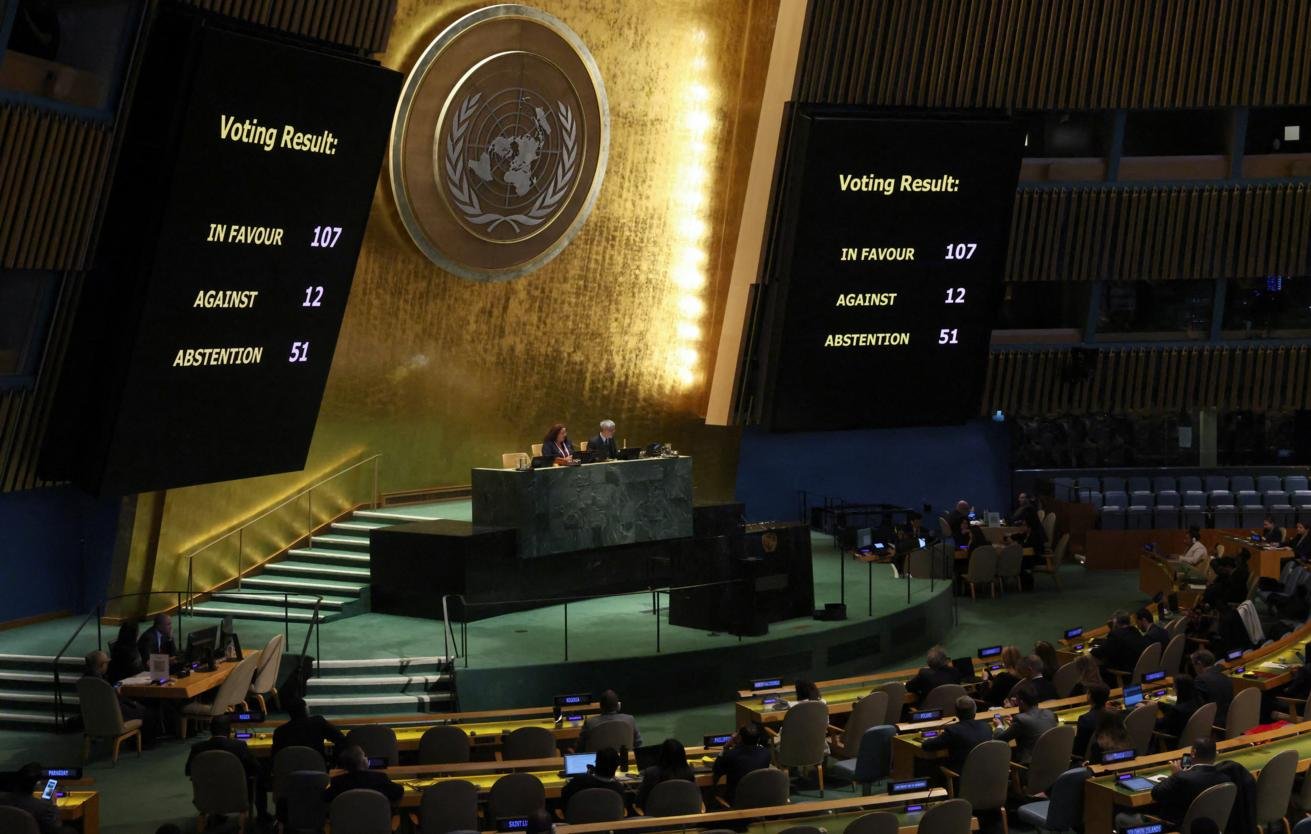 Jami 107 davlat rezolyutsiyani yoqlab, 12 davlat esa qarshi ovoz berdi. Hujjatga qarshi chiqqanlar orasida Rossiya, Belarus, Kuba, Nikaragua, Eron, Shimoliy Koreya va bir qancha Afrika davlatlari bor edi. Yana 51 davlat betaraf qoldi.