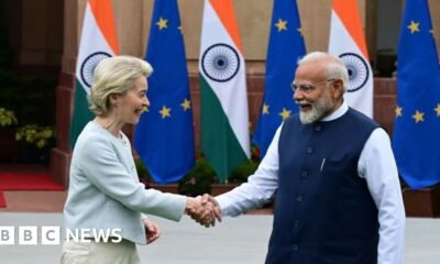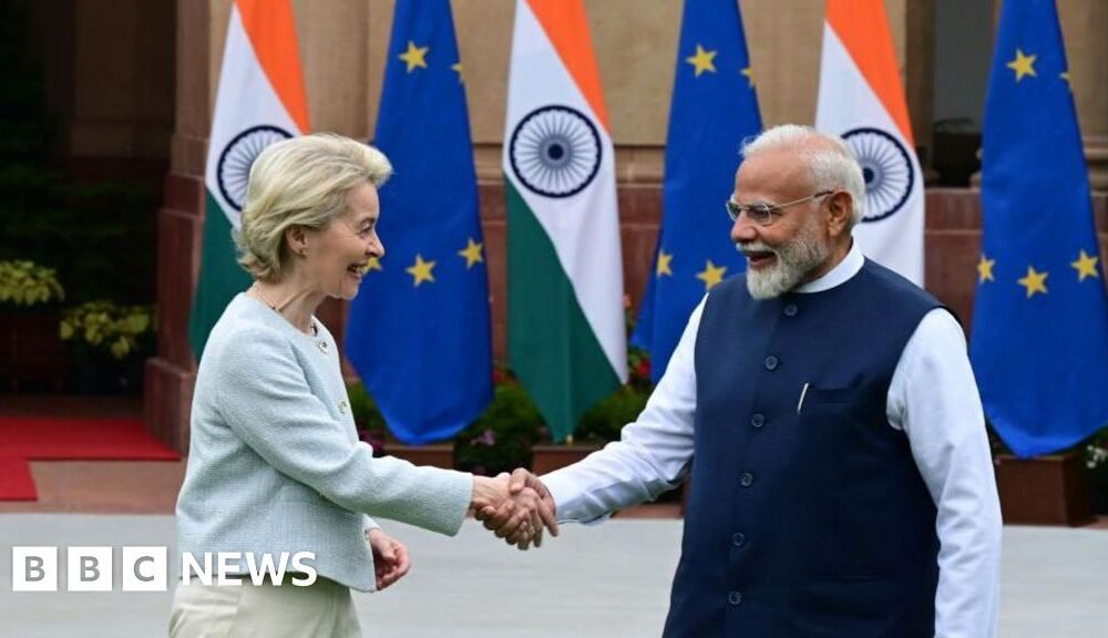 Hindustan Times (Getty Images orqali) Yevropa Komissiyasi prezidenti Ursula fon der Leyen (chapda) va Hindiston Bosh vaziri Narendra Modi yil boshida. Hindiston va Yevropa Ittifoqi qariyb...