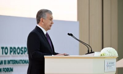 Prezident Shavkat Mirziyoyev Namangan shahrida 30 dan ortiq nufuzli tashkilot va 200 ga yaqin xalqaro ekspertlar ishtirokidagi “Kambag‘allikdan farovonlik sari” xalqaro forumining ochilishida nutq so‘zlamoqda. Foto:...