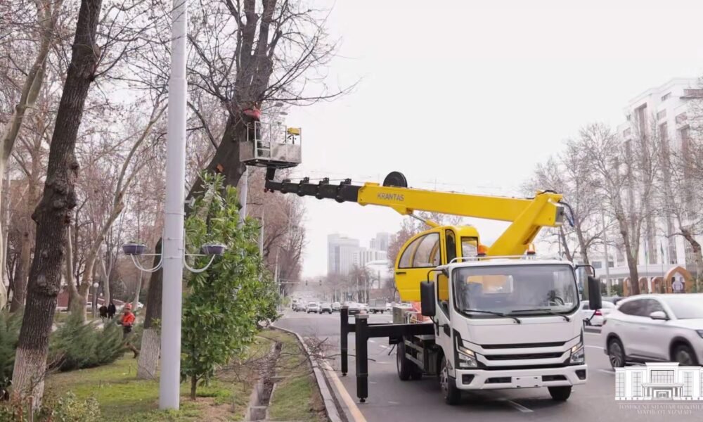 Toshkent shahar hokimligi huzuridagi tegishli obodonlashtirish xizmatlari mutaxassislari poytaxtning asosiy ko‘chalari bo‘ylab daraxtlarni parvarishlash, sanitar kesish ishlari va zararkunandalarga qarshi ishlov berish tadbirlarini amalga oshirmoqda. Foto:...