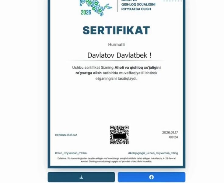 Aholi va qishloq xo‘jaligini ro‘yxatga olish jarayoni doirasida fuqarolar tomonidan onlayn savolnomani to‘ldirish bilan bog‘liq turli savollar kelib tushmoqda. Ushbu savollarga rasmiy javoblar taqdim etiladi. —...
