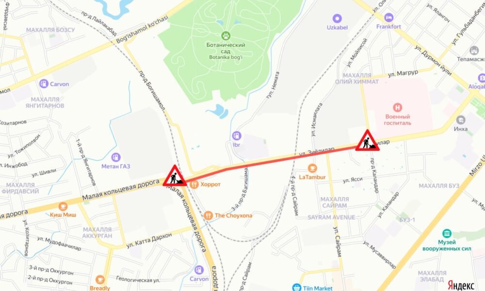 Mirzo Ulug‘bek tumanida qurilish-montaj ishlari olib borilishi sabab Ziyolilar ko‘chasining bir qismi yopiladi. Foto: Toshkent shahar hokimligi Toshkent shahar Mirzo Ulug‘bek tumanidan o‘tuvchi ko‘chalardan biri transport...