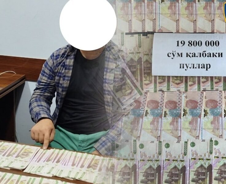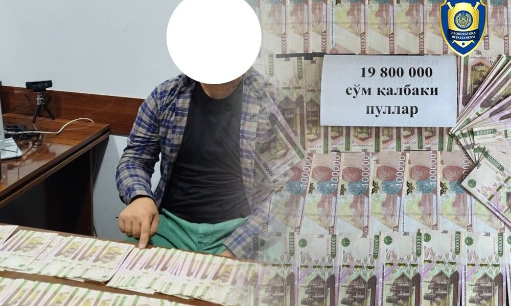 Fuqaro va boshqalar o‘zaro til biriktirib, boshqa bir fuqaroga 19,8 mln so‘m qalbaki pullarni 10 mln so‘mga sotgan vaqtida qo‘lga olindi. Foto: Bosh prokuratura huzuridagi departament...