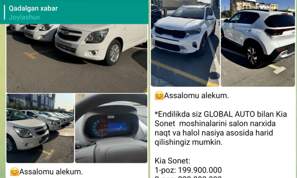 Shu yil fevralida davlat ro‘yxatidan o‘tgan, 30 maydan “sotuv” reklamalarini boshlagan “Global avto kredit” MChJ odamlarga foizsiz bo‘lib to‘lash sharti bilan qimmatbaho elektromobillarni va’da qilmoqda. GM...
