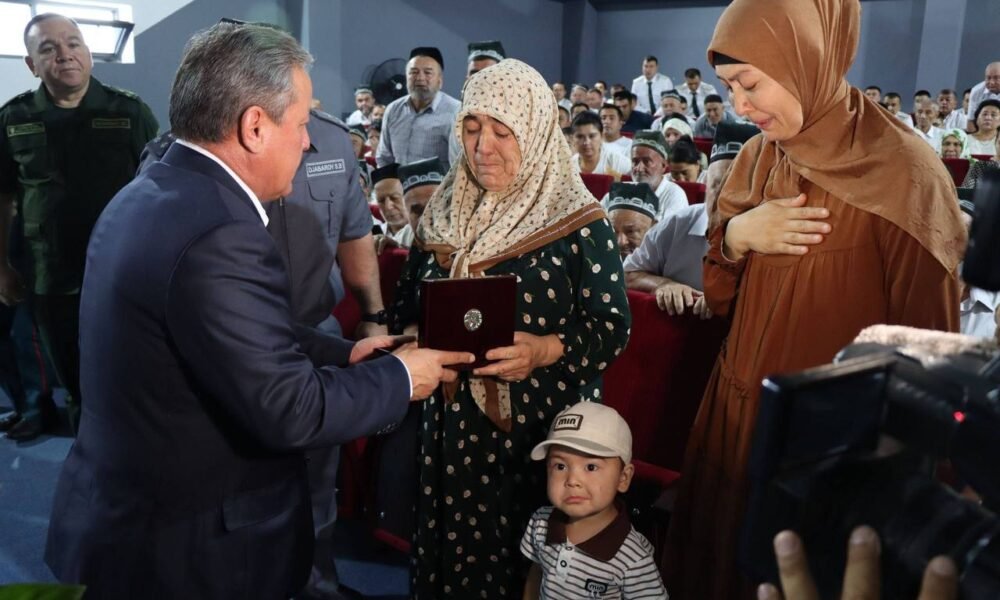 Andijonda 65 yoshli mast fuqaro tomonidan pichoqlanishi oqibatida vafot etgan profilaktika inspektori «Jasorat» medali bilan taqdirlandi. Medal viloyat hokimi tomonidan marhumning oila a’zolariga topshirildi. Foto: Andijon...