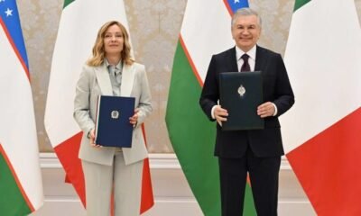 Samarqandda bo‘lib o‘tgan muzokaralar yakunida Prezident Shavkat Mirziyoyev va Italiya Respublikasi Bosh vaziri Jorja Meloni ikki mamlakat o‘rtasidagi Strategik sheriklik munosabatlarini mustahkamlash to‘g‘risidagi qo‘shma deklaratsiyani qabul...