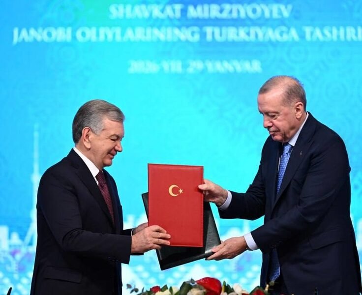 Prezidentlar Shavkat Mirziyoyev va Rejep Tayyip Erdo‘g‘on Qo‘shma bayonot va keng qamrovli strategik sheriklik doirasidagi hamkorlik mexanizmlari to‘g‘risidagi qarorni imzolaganidan so‘ng O‘zbekiston va Turkiya ikki tomonlama...