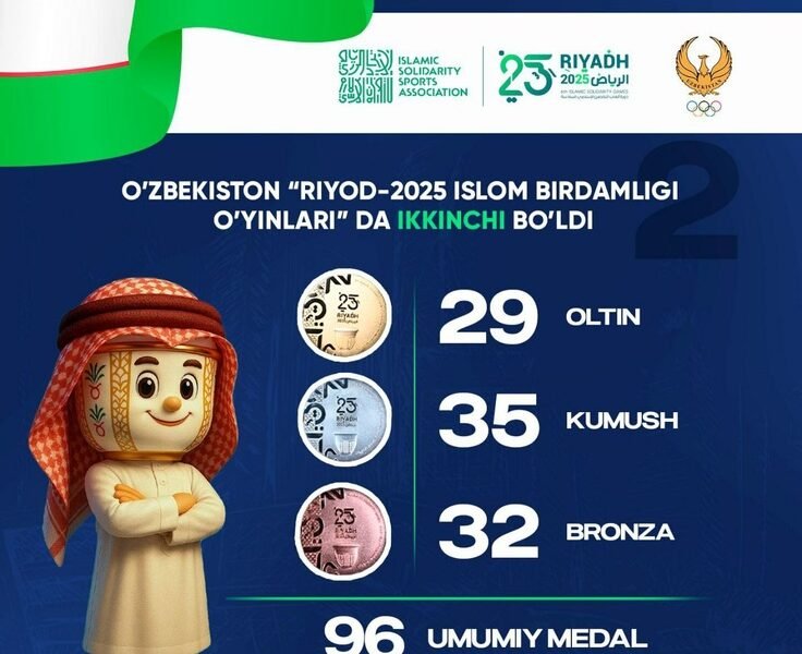 O‘zbekistonlik sportchilar 29 ta oltin, 35 ta kumush va 32 ta bronza medalini qo‘lga kiritdi. Saudiya Arabistoni poytaxti Riyoz shahrida 7-21 noyabr kunlari VI Islom birdamligi...