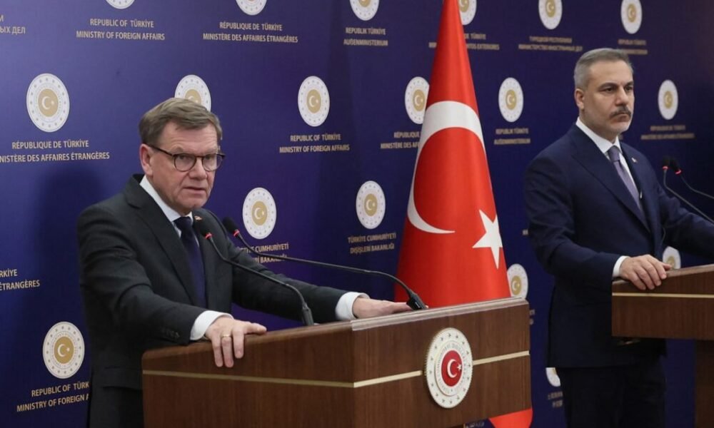 Turkiya tashqi ishlar vaziri Xoqon Fidan va Germaniya tashqi ishlar vaziri Yoxan Vadeplu Anqaradagi muzokaralardan so‘ng qo‘shma matbuot anjumanida ishtirok etishdi, 2026-yil 12-mart (ADEM ALTAN/AFP surati)...