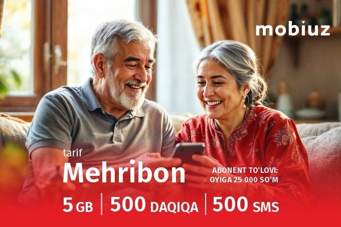 Mobiuz keksa avlodga g‘amxo‘rlik qilish va ijtimoiy himoyaga muhtojlarni qo‘llab-quvvatlash kompaniya vazifasining ajralmas qismi ekanligiga ishonadi. “Mehribon” tarifi yanada adolatli va inklyuziv jamiyat qurish yo‘lidagi yana bir qadam bo‘ldi.