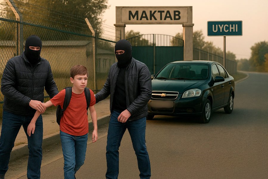 Uychi tumanidagi Mustaqillik mahallasi. Uyidan chiqib o‘qishga yo‘l olgan bolakay maktab darvozasiga yetganida niqobli shaxslar hujumiga uchradi: Nexia mashinasida kelgan erkaklar uning qo‘lini qayirib, mashinaga tiqishdi va ko‘zdan g‘oyib bo‘lishdi. Barchasi soniyalar ichida sodir bo‘lgandi. Hamma oyoqqa turdi. Eshitganlar borki hayrat ichida bir-biriga pichirlashga tushdi: kimdir otasining dushmanlari qilgan desa, boshqasi hozir bola o‘g‘rilari ko‘paygan, sotib yuborishadi derdi. Biroq bu taxminlar haqiqatdan yiroq edi.