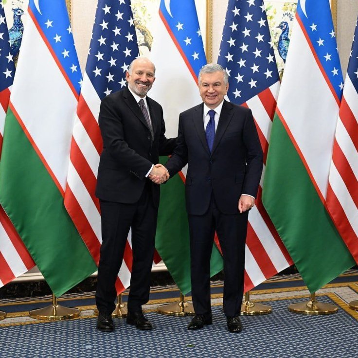 AQShning yetakchi kompaniyalari, investitsiya fondlari va moliyaviy institutlari rahbarlari bilan o‘tkazilgan davra suhbati yakunida O‘zbekiston Respublikasi Prezidenti Shavkat Mirziyoyev va AQSh savdo vaziri Xovard Latnik ishtirokida ikki tomonlama bitimlarni almashish marosimi bo‘ldi.