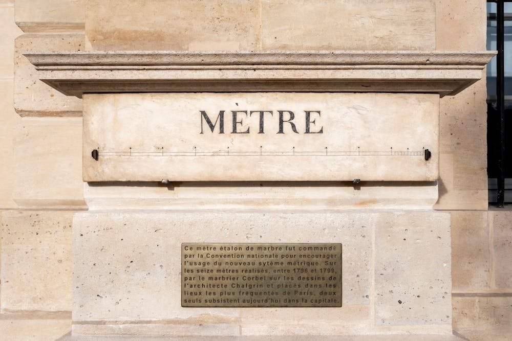 Metr o‘lchov birligining rasmiy marmar etaloni. Parij, Vandom maydoni / Foto: Shutterstock