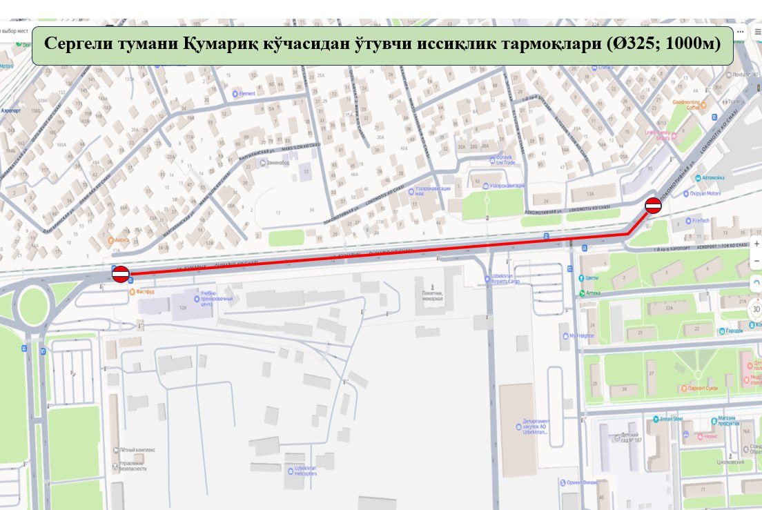 Shu kunlari kuz-qish mavsumiga tayyorgarlik doirasida ko‘chadagi diametri 325 mm bo‘lgan issiqlik tarmoqlarining umumiy 1000 metr uzunlikdagi qismi almashtiriladi.