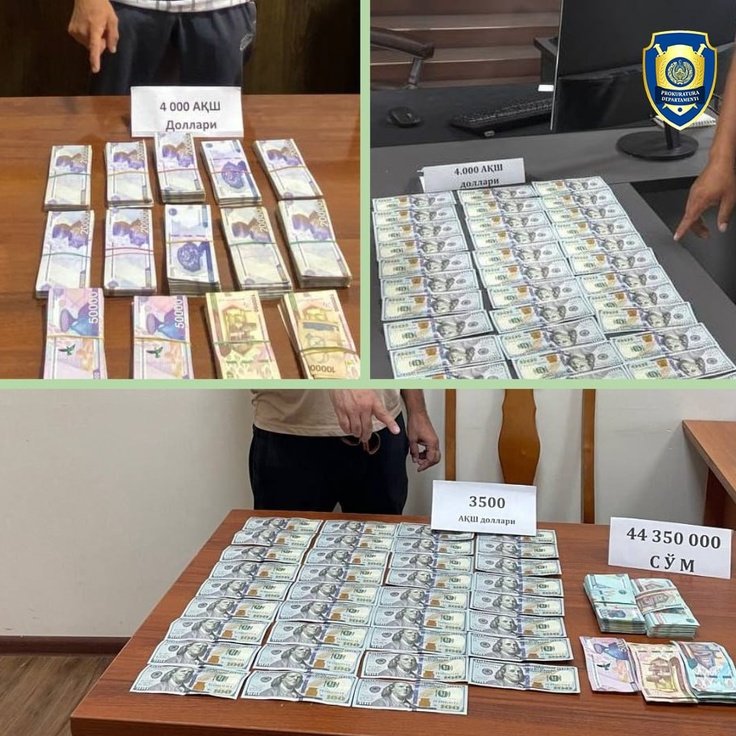 Shu kabi, Departamentning Buxoro viloyati boshqarmasi tomonidan o‘tkazilgan tezkor tadbirda fuqaro K.I. fuqaro N.I.dan 4 000 AQSh dollarini 50,4 mln so‘mga sotib olgan vaqtida ashyoviy dalillar bilan ushlangan.
