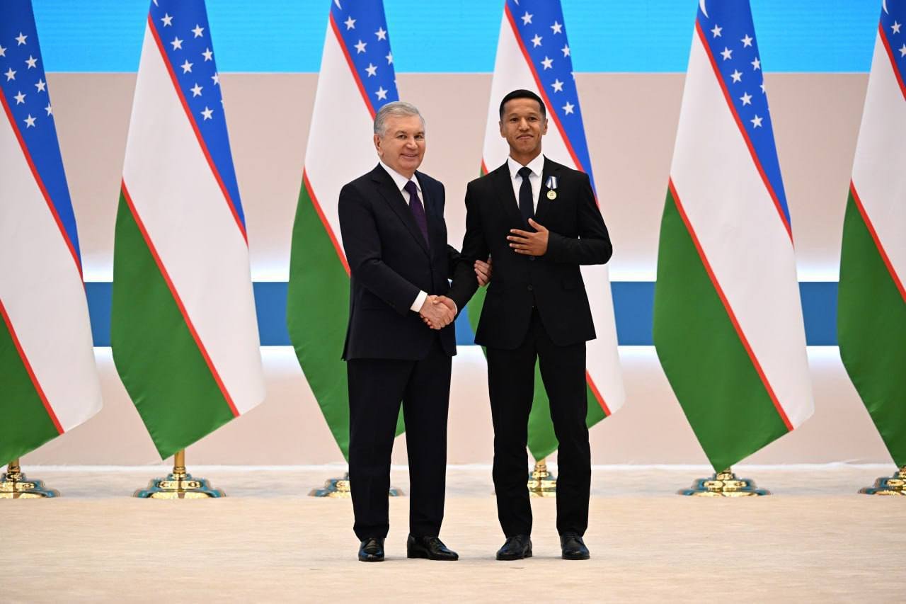 Toshkentdagi Xalqaro konferentsiya markazida qat’iy marosim bo’lib o’tdi va “Kerajak quyoti” (Kelajak quruvchisi) medali va “Mard Ogron” (jasur o’g’li) mukofotiga sazovor bo’ldi. Prezident Shavkat Mirziyoyev shaxsan mukofotlarni shaxsan taqdim etdi va yoshlar bilan ta’lim, startup va bandlik tashabbuslari to’g’risida muhokama qildi.