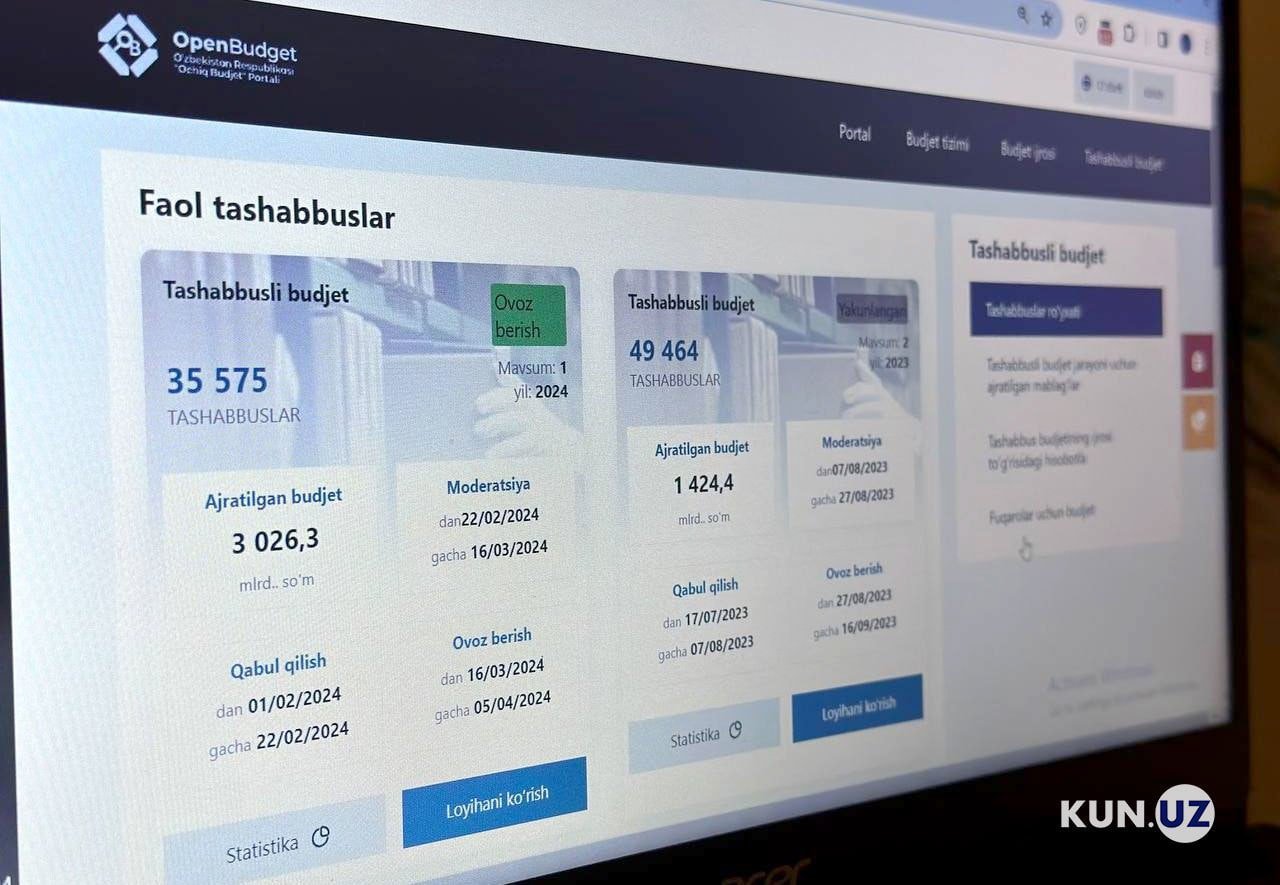 Shuningdek, 2025 yil 1 oktyabrga qadar “Ochiq budjet” axborot portalida “Tashabbusli budjet” doirasida g‘olib bo‘lgan loyihalarning interaktiv xaritasi ishga tushiriladi.