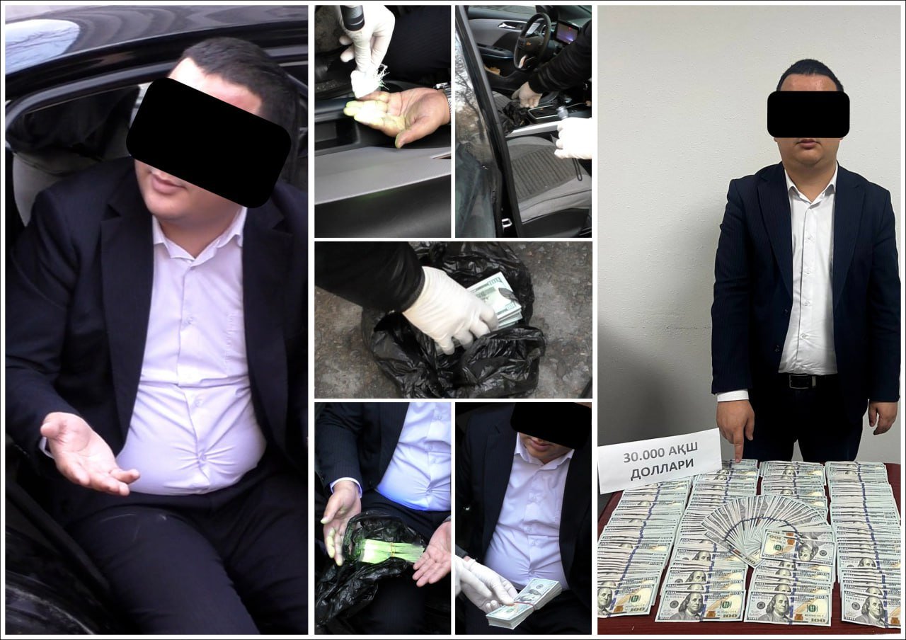 Toshkent viloyatidagi bank xodimi qurilish materiallari ishlab chiqaruvchi korxonadan soliq va boshqa majburiy to‘lovlarni bekor qilish uchun 110 ming dollar talab qilganlikda gumonlanib qo‘lga olindi.