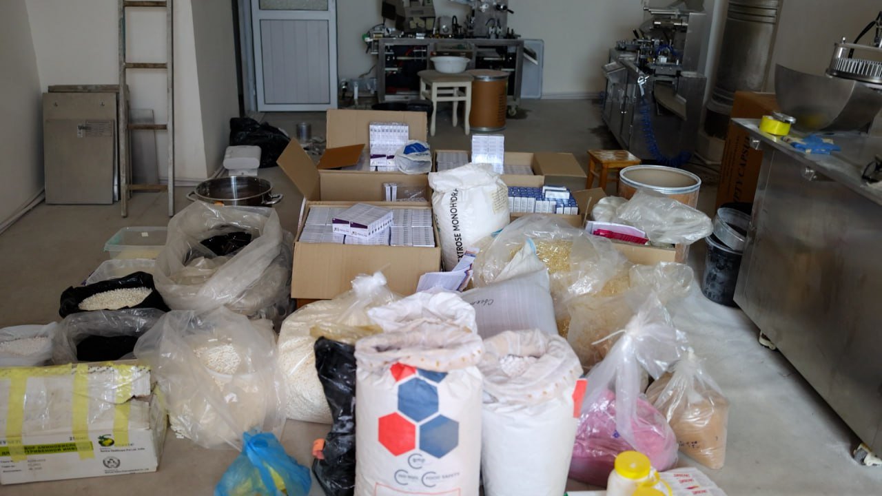 “Farmatsevtika mahsulotlari xavfsizlik markazi” DM ekspertiza xulosasiga ko‘ra, yashirin sexda “Ursosan 250 mg”, “Neyromidin 20 mg”, “Fanigan” dori vositalari qalbakilashtirilgan.