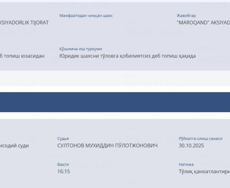 Avvalroq, 2025 yil oktyabr oyida Toshkent tumanlararo iqtisodiy sudi Humans MChJni bankrot deb topgan edi. Endi esa uning to‘lov infratuzilmasi bilan bog‘liq bo‘lgan «Maroqand» aksionerlik jamiyati ham rasman tugatish jarayoniga kirdi.