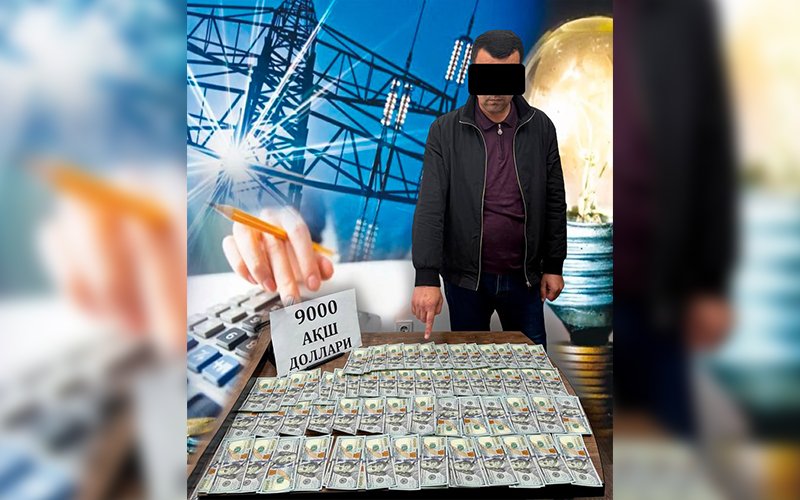 Davlat xavfsizlik xizmatining Farg‘ona viloyati bo‘yicha boshqarmasi hamda Iqtisodiy jinoyatlarga qarshi kurashish departamenti xodimlari hamkorligida o‘tkazilgan tezkor tadbirda muhandis so‘ralgan pul mablag‘ining 9 ming AQSh dollarini uchinchi shaxs orqali olgan vaqtida ushlandi.