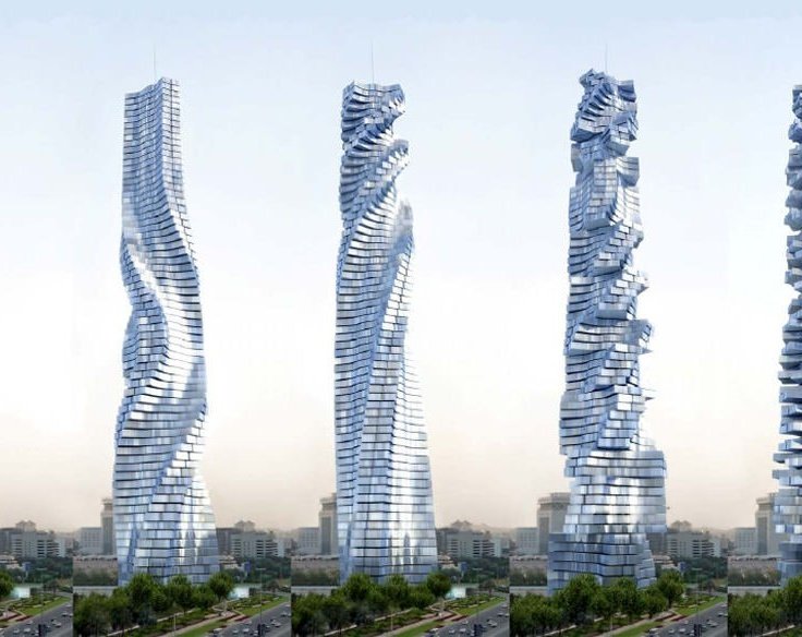 Ma’lumot uchun: dinamik arxitektura — binolar va inshootlarning harakatlana oladigan, ya’ni o‘z shaklini yoki holatini vaqt davomida o‘zgartira oladigan ilg‘or arxitektura turi.